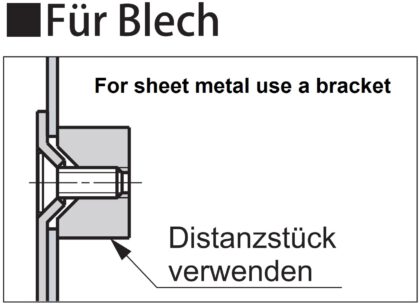 • Le maniglie pieghevoli in acciaio inossidabile a forma di anello 980642 possono essere installate anche nella lamiera utilizzando un distanziatore e quattro viti in lamiera M3. Questi non sono inclusi nella fornitura (per ulteriori dettagli vedere il