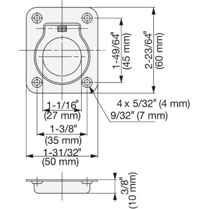 • Distanza tra i fori di montaggio: 35 mm (1-3/8″) in orizzontale e 45 mm (1-25/32″) in verticale